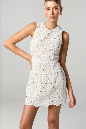 Evie Short Dress. White Floral Lace. By Winona Australia.