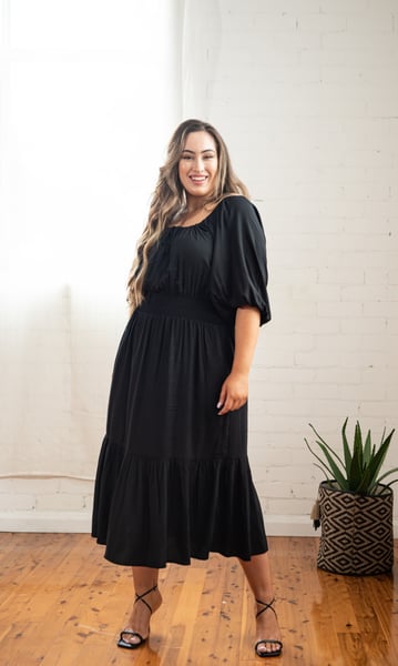 Diana Prairie Midi Dress. Black. Dani Marie the Label.