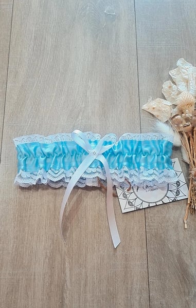 Blue Ribbon & White Lace Garter. By NATASA. Size S